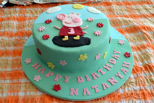I have done a few cakes since I posted one. The first was a repeat on Peppa pig. My god-daughter was going to have a princess party until I was showing her mum photos of the Peppa Pig cake which said little girl saw too. Her mum said that for the next two weeks she went around telling everyone she was having a Peppa Pig party. lol